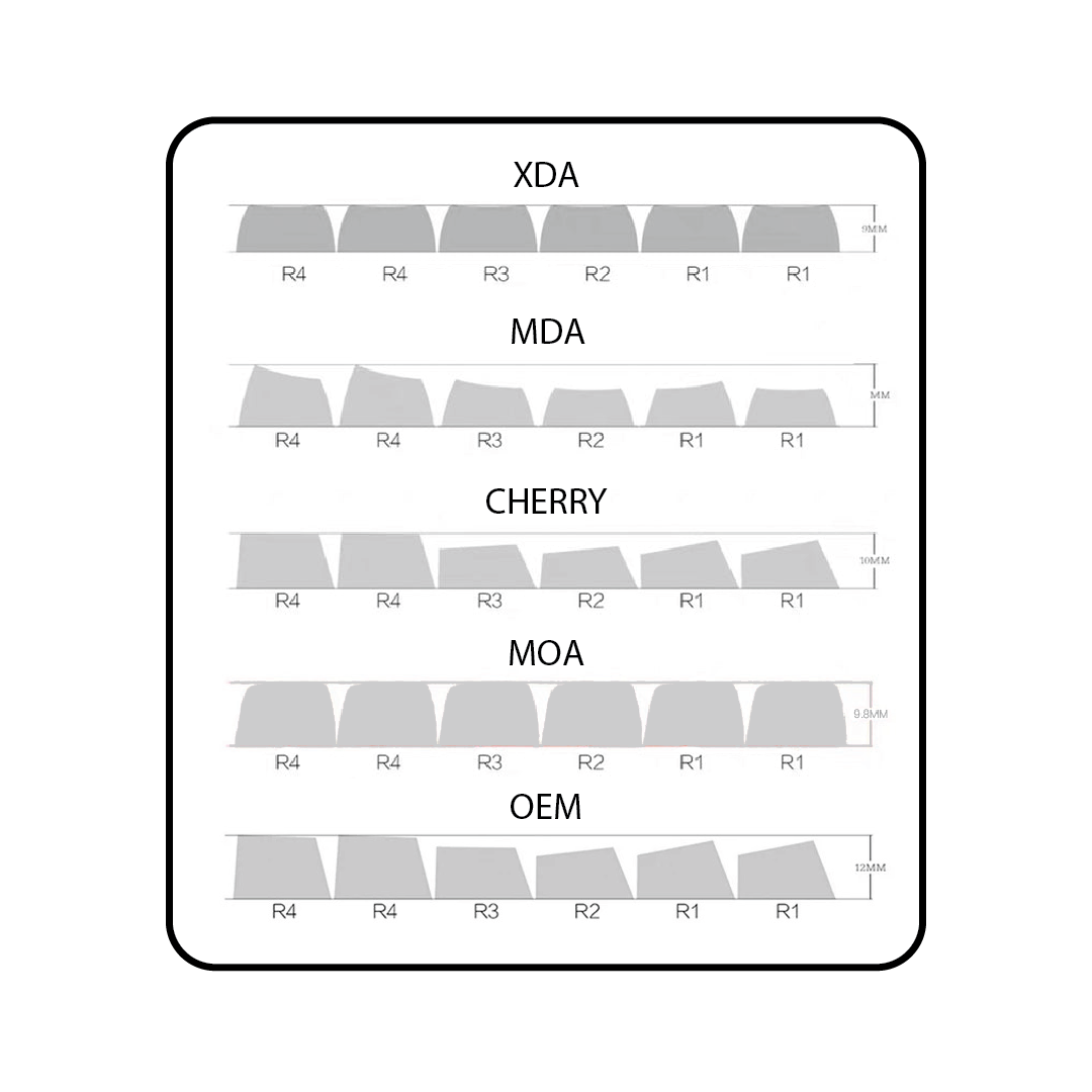 OEM Profile: Slightly taller than Cherry with a classic “stock keyboard” feel. Comfortable and easy to get used to.